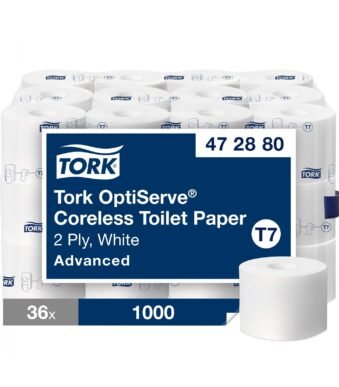 Tork 472880 Advanced coreless High Capacity Bath Tissue, 2 Ply, 1000 Sheets x 36 rolls/case